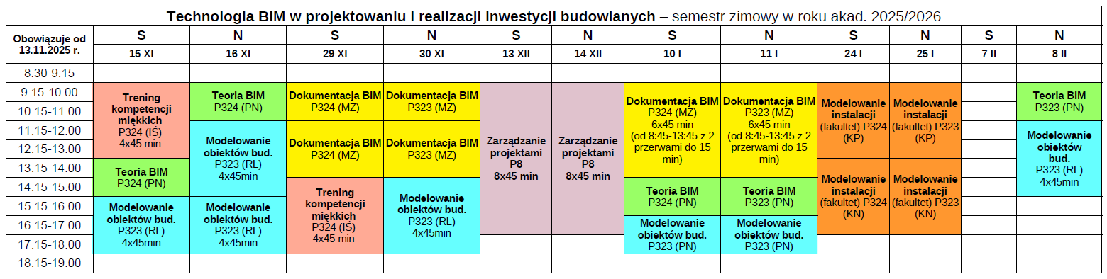 Zamieszczam rozkład zajęć uwzględniający styczeń i luty 2026 r.